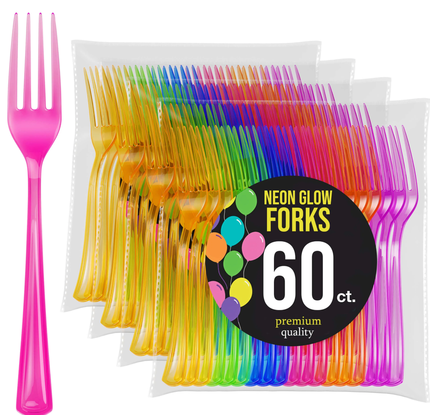 Heavy Duty Neon Plastic Forks | 60 Count